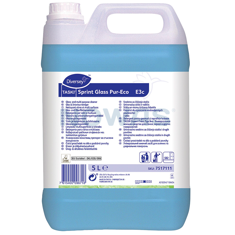 Taski Sprint Glass Pur-Eco är ett miljömärkt glasrengöringsmedel för streckfri rengöring av glas, datorer, telefoner och andra hårda ytor som tål vatten. Tar enkelt bort fingeravtryck och lätt smuts. Enkelt och snabbt att använda. Även lämpligt för andra vattentåliga ytor, t.ex. fönster, speglar, glaserad keramik och plast.