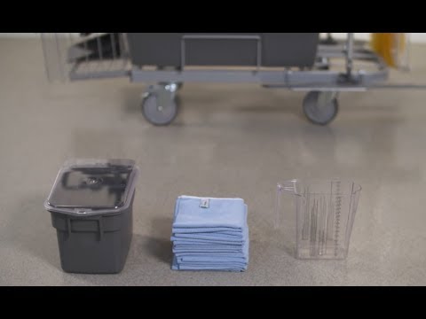Box som kan användas för både förberedelse och säker förvaring av trasor och andra föremål för användning vid daglig städning.