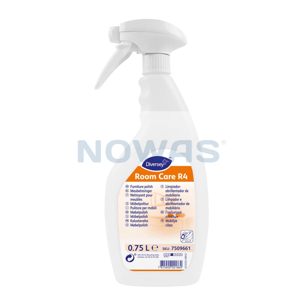 Room Care R4 är en icke aerosolbaserad möbelpolish. Vid köp av min. 6 st. ingår 1 st. sprayhuvud.