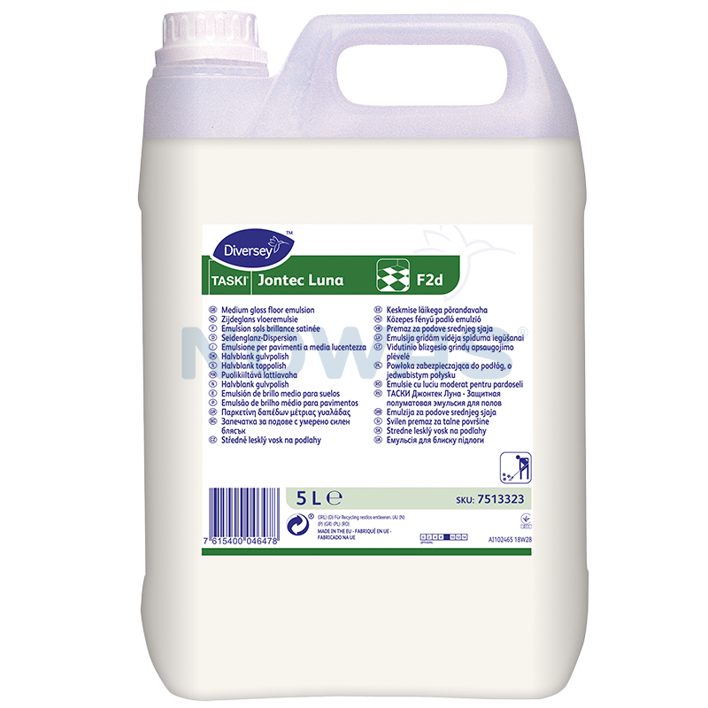 Jontec Luna F2d polish är lämplig för både manuell och maskinell rengöring. Kan appliceras med en ren mopp eller polishapplikator. Fördela jämnt.
