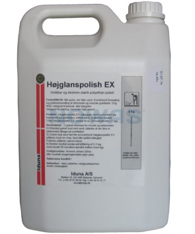 Högglans polish EX används för kombinerad tätning och polering av alla vattentäta golv - dock inte laminatgolv.