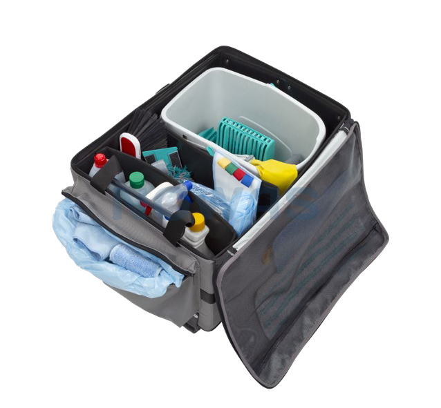 Vagnen är idealisk för rengörings- och desinfektionsuppgifter som kräver rörlighet och flexibilitet. Vagnen är indelad i fack så att du enkelt och överskådligt kan förvara rengöringsmedel och rekvisita. Vagnen kännetecknas av effektivitet och en kompakt design som gör att städuppgifter kan utföras snabbt och diskret.