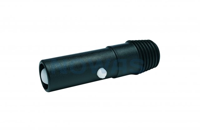 Med denna adapter kan ett vanligt skaft eller ett teleskopskaft med klick förvandlas till ett aluminiumskaft, ett teleskopskaft eller ett annat skaft med gänga.