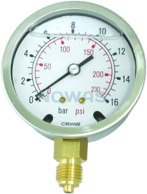 Manometer Ø50 1/4 tums 10 bar bakåtvänd koppling, glycerin