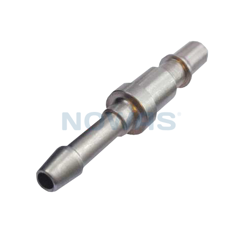 Rostfri stålnipple med 6 mm slangtapp.
