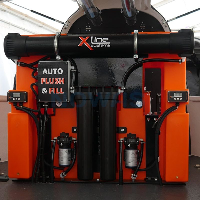 Renvattensystemet från X-line väger mindre än andra system. Detta beror på att de tunga metallramarna och -beslagen har utelämnats ur designen. Tanken fästs genom vågbrytarna i själva tanken, och fäst på en skena som monteras på bilens golv.