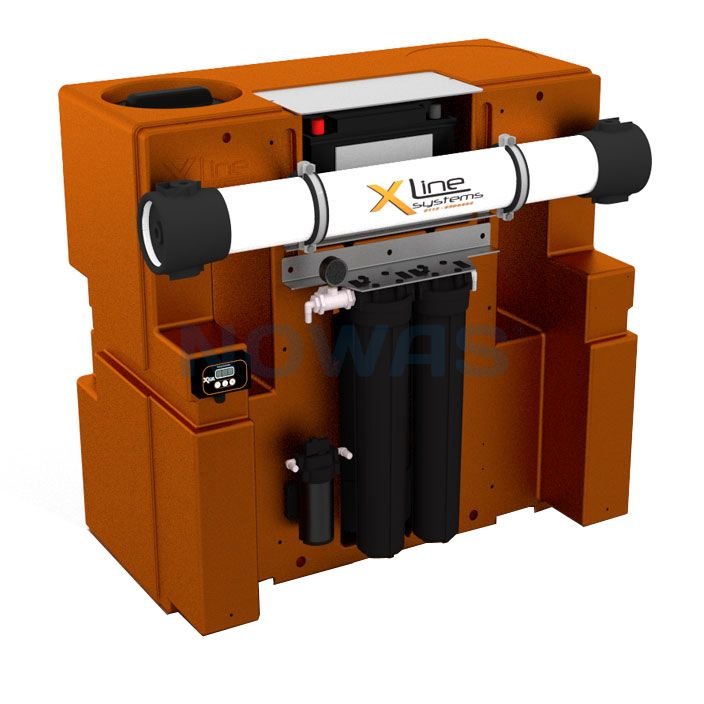 Alla komponenter i renvattensystemet X-tank är integrerade i tankens mitten. Allt detta är inbyggt så att basen på tanken är så liten som det överhuvudtaget är möjligt. Komponenterna kommer inte lätt till skada vid den dagliga hanteringen av systemet eftersom alla delar skyddas i X-tankens mitten.