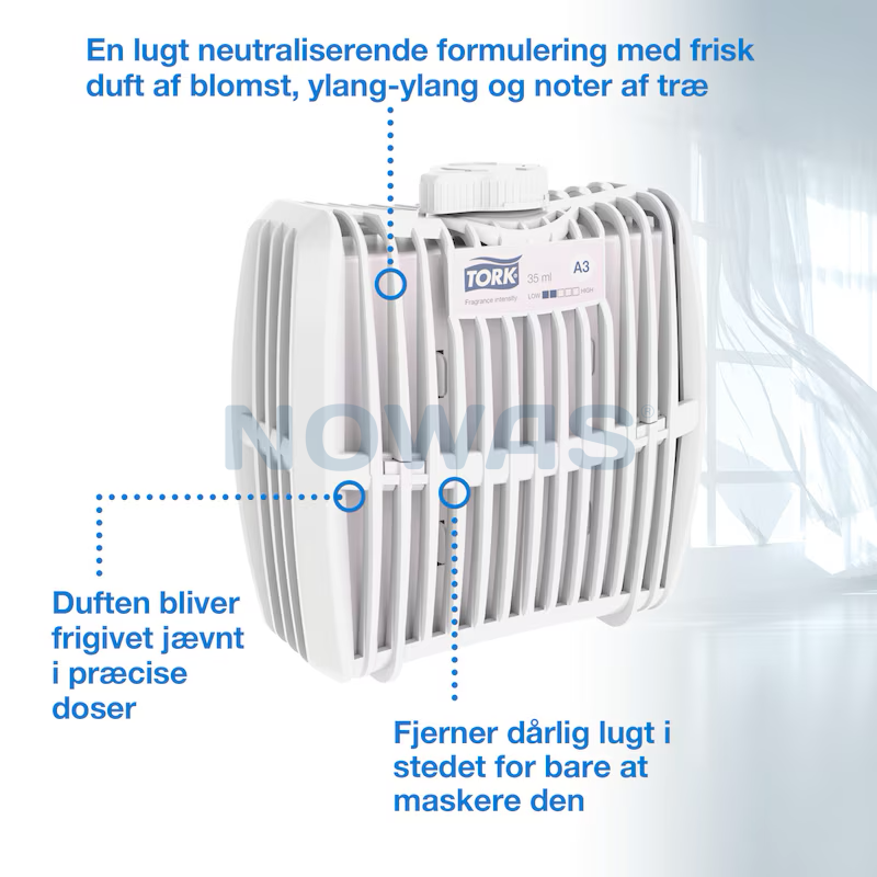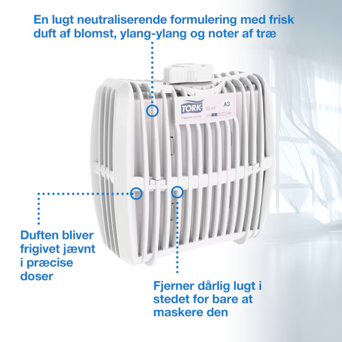 Håll luften i dina toaletter fräsch och inbjudande med den luktneutraliserande Tork Constant Airfreshener i den behagliga doften Breeze med ylang-ylang och blommiga och träiga noter, vilket ger en känsla av konstant frisk luft. Använd den med Tork Dispenser Constant Airfreshener, som är bevisat enkel att använda för städpersonal.