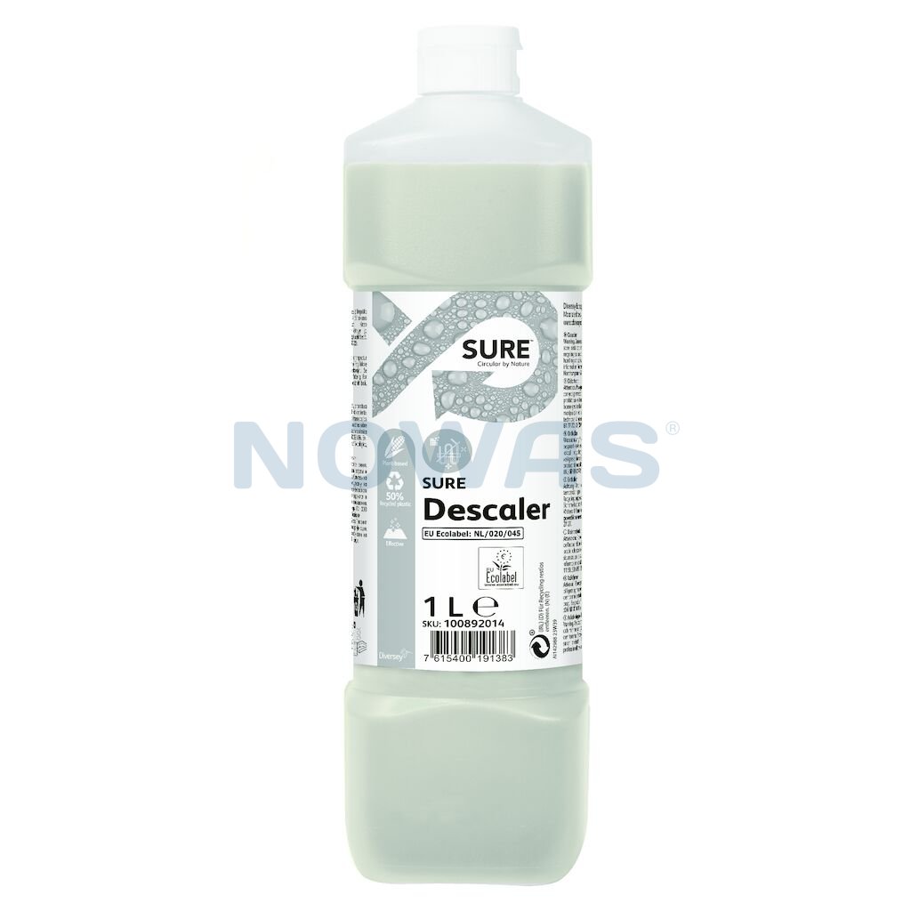 SURE avkalkningsmedel är ett surt avkalkningsmedel utan parfym och färg för effektivt avlägsnande av kalkavlagringar på utrustning och redskap. SURE avkalkningsmedel tar enkelt bort torkad kalk.