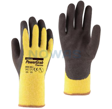 Hållbara handskar för kallt väder. Helt belagt tumområde för att ge mer skydd. Ger ett bra grepp, bra fingerkänslighet samtidigt som händerna är väl skyddade. PowerGrab(R) Thermo-handsken är en stickad handske i polyester/bomull med latexbeläggning i handflatan och fingertopparna.