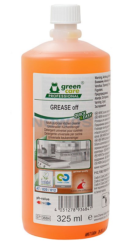 - Tack vare den speciella kombinationen av ytaktiva ämnen är GREASE off Quick & Easy mycket effektivt och har unika avfettningsegenskaper, som gör det möjligt att ta bort även envis smuts i livsmedelsbearbetningsområden.