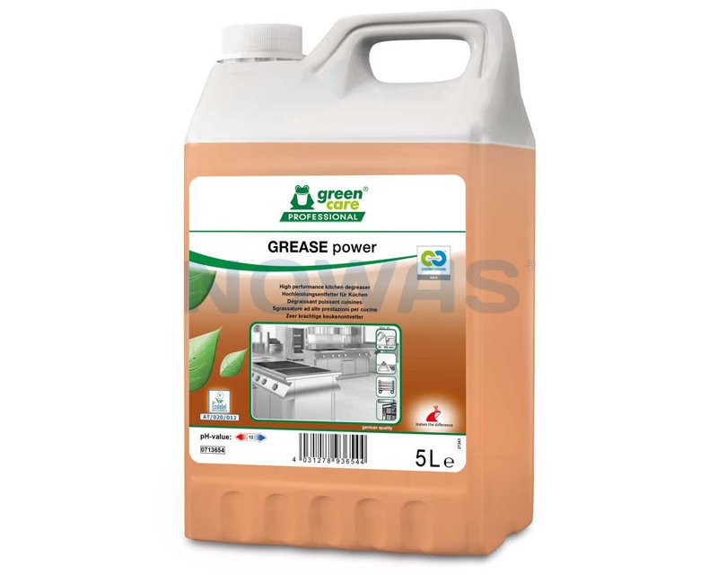 GREASE power tar enkelt bort fett från alkalibeständiga ytor utan att lämna några rester. GREASE power kan användas på olika ytor och olika utrustningar och underlättar därmed arbetet. GREASE power är lätt att använda och kan appliceras manuellt och mekaniskt (t.ex. med en spruta eller skumpistol). Produkten förbättrar arbetssäkerheten samtidigt som den ger extremt bra resultat på envisa skorpbildningar. Lämplig för rengöring av spisar och grillar.