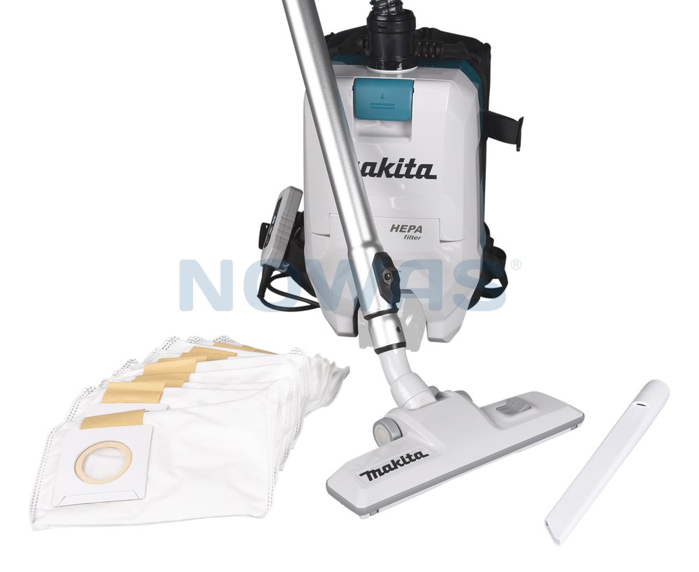 Ryggdammsugare med justerbar bärrem och höftbälte som underlättar mobilt arbete. Utrustad med ett effektivt HEPA-filter och en 2-liters dammpåse. Sugkraften kan justeras i fyra steg och det finns en separat LED-lampa. Med ökad sugkraft är denna dammsugare en lämplig maskin för dagligt bruk. Inkluderar rengöringskit.