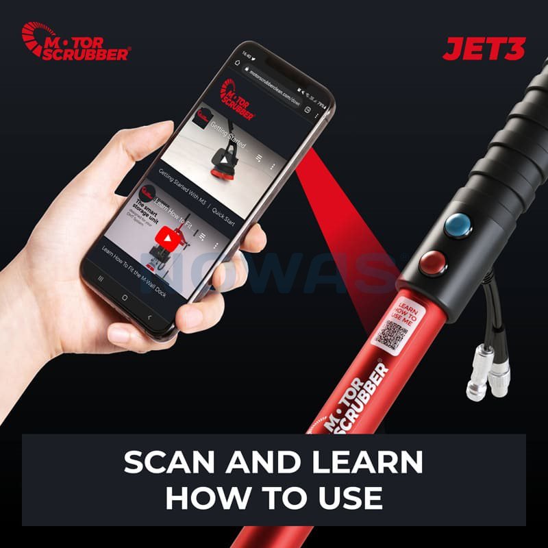 Lättviktsmaskin som gör det möjligt att rengöra väggar upp till 3 meters höjd. JET3 är extremt lätt och väger under 2 kg (3,3 lbs), vilket gör den perfekt för långvarig användning.