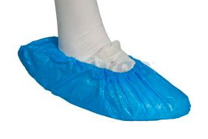 Blått, präglat, elastiskt PE-skoöverdrag.