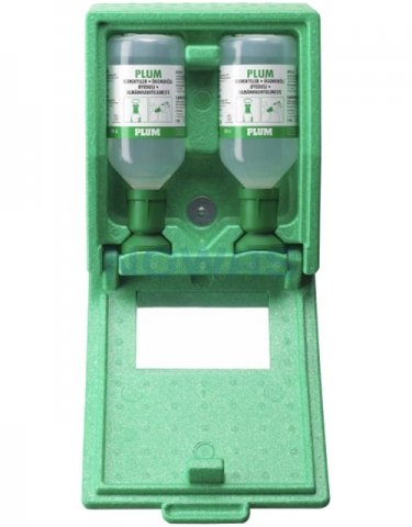 Dammsäker väggstation i slagtålig polystyren med 2 x 500 ml Plum ögonskölj. Denna ögonduschstation är mycket lämplig till produktionsområden med mycket smuts och damm samt på mobila arbetsplatser.