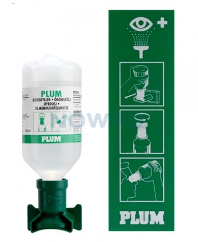 Väggstation med 1 x 500 ml Plum ögonskölj komplett med piktogram.