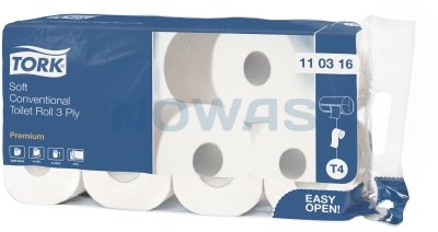 Toalettpapper Tork T4 3-lagers premium extra mjukt 29,5 meter pr toalettpappersrulle.