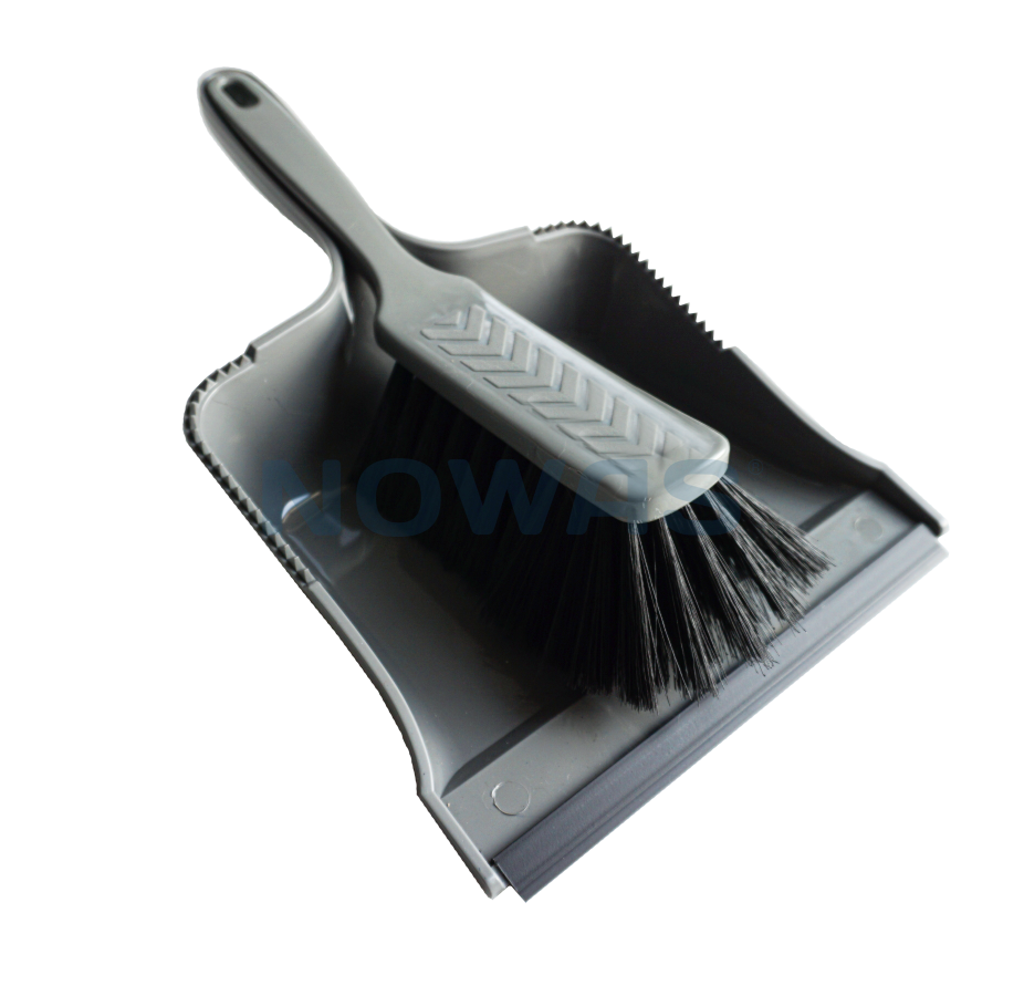 Kvasten har mjuka borst och sopbrickan har en gummiläpp som underlättar att plocka upp grov och fin smuts.