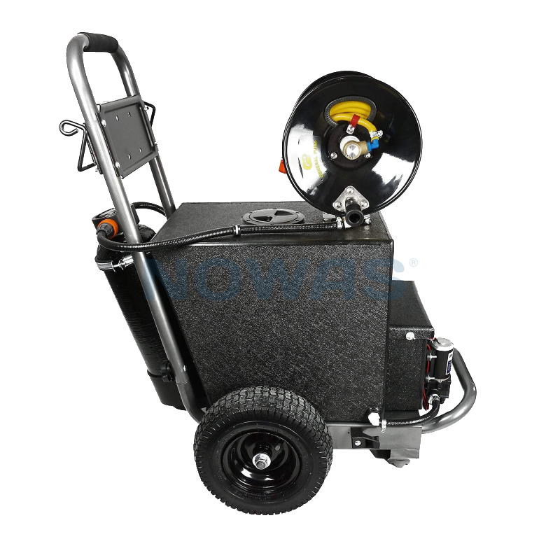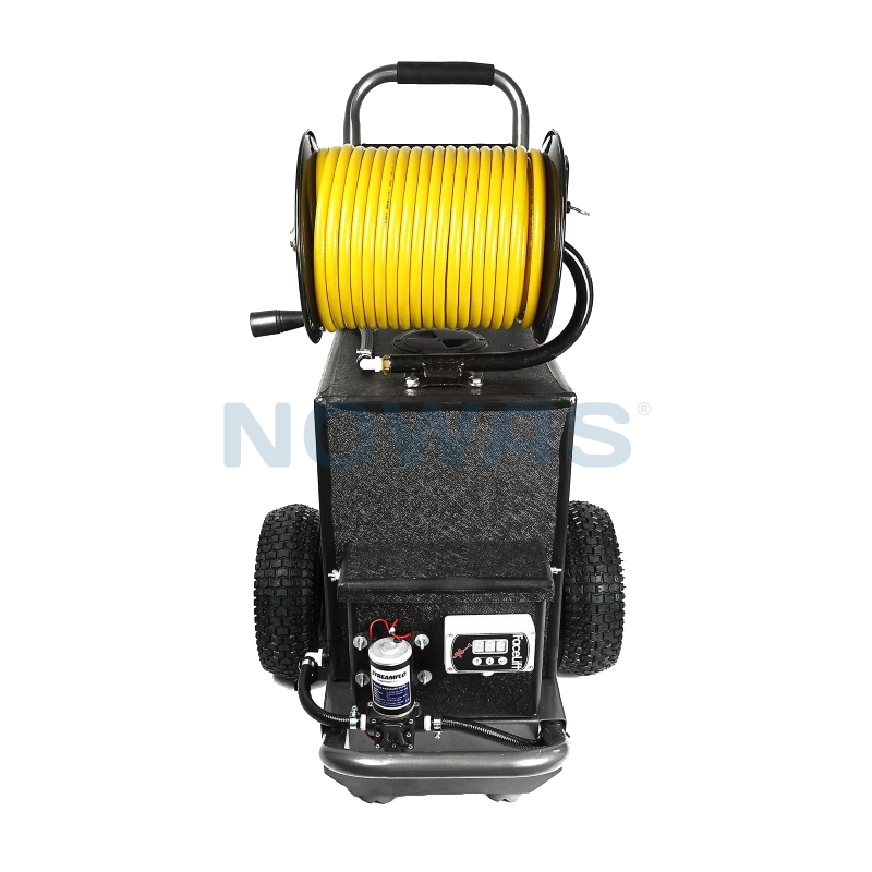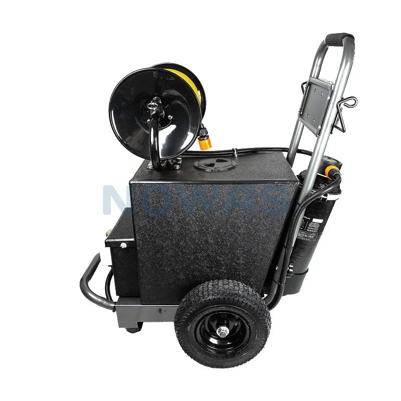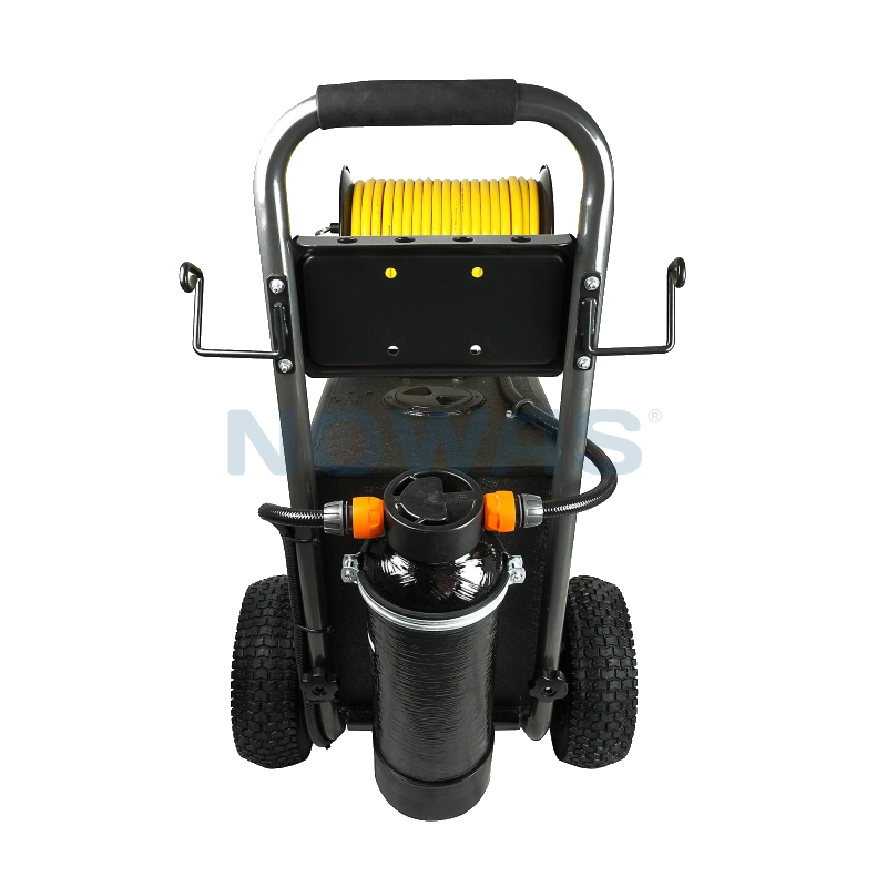 Den mobila trolleyns vattenvagn med 60 liters vattentank kommer även med en inbyggd 8 mm slangvinda på 30 meter.