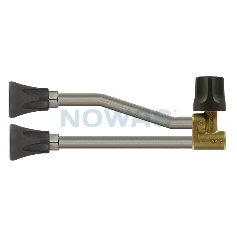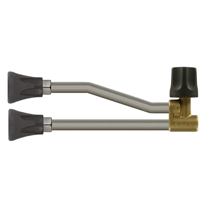 Slitstark och effektiv dubbel-lans för professionell högtrycksrengöring. Lansen har en 15° böj och är utrustad med en ST-53 ventil upptill för enkel och exakt tryckkontroll. Levereras med ST-10 munstycksskydd med lågtrycksmunstycken och 1/4" F-gänga, vilket ger utmärkt flexibilitet och kontroll under arbetet.