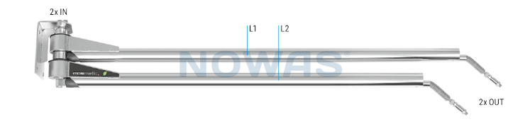 Väggmonterad dubbelrörsbom för biltvätt - 1450 mm. och 1600 mm.