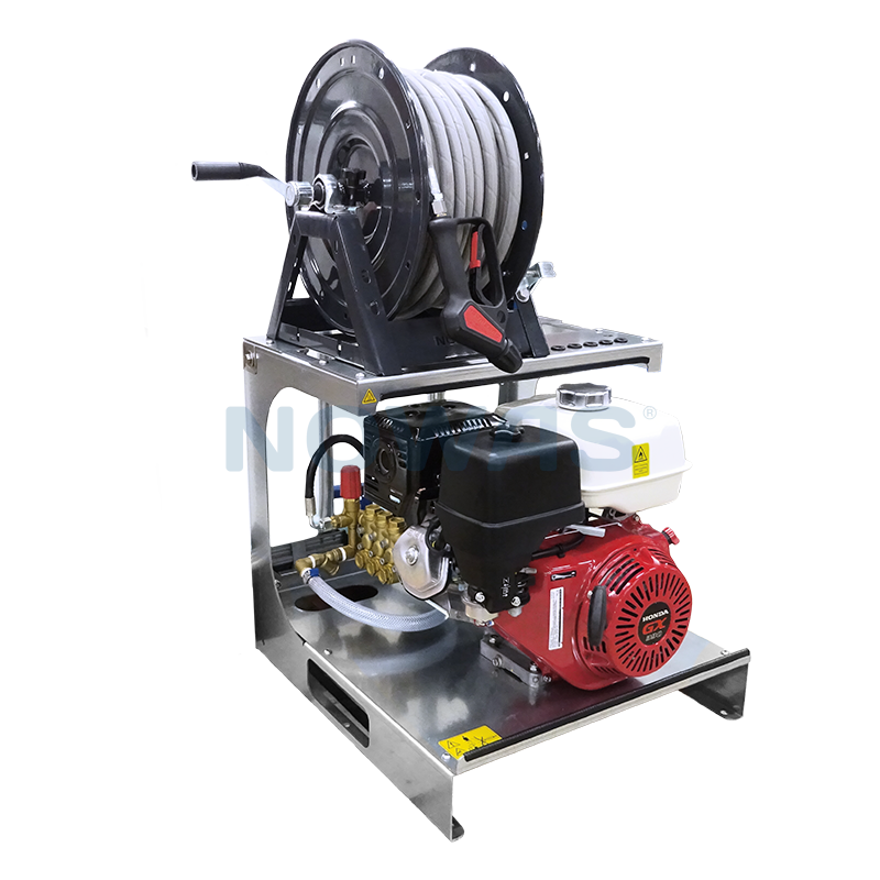 Flyttbar med pallgafflar så att du enkelt kan byta plats. Dessutom kan högtryckssystemet enkelt fixeras i bil eller släp.