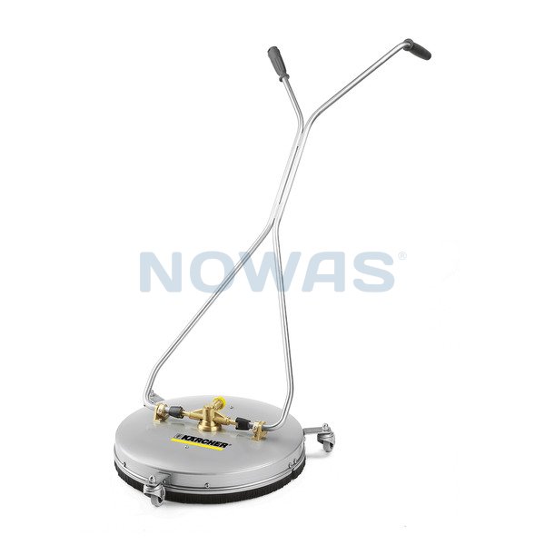 Varmvattenbeständig terrassrengörare FR 50 med hölje i rostfritt stål och en arbetsbredd på 500 mm. Perfekt för stora ytor. FR 50 är utrustad med ett dubbelt keramiskt lager, ett praktiskt körhandtag, svängbara hjul och inbyggd lågtrycksdosering av rengöringsmedel.