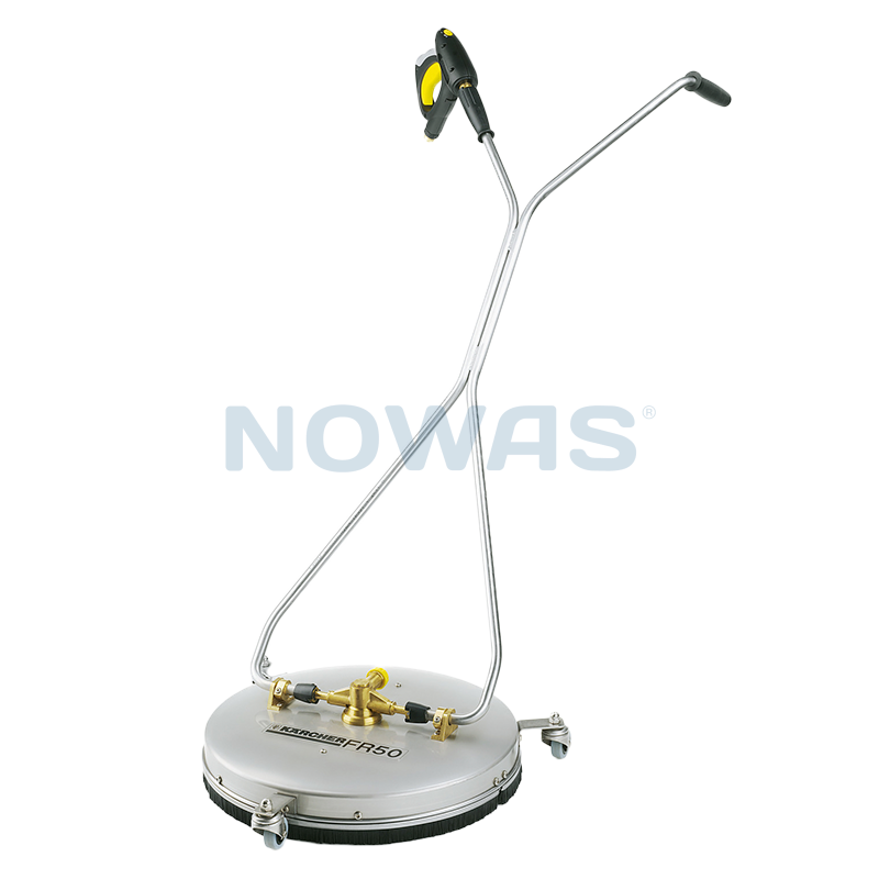 Varmvattenbeständig ytrengörare med en arbetsbredd på 500 mm. Perfekt för stora ytor. Dubbla keramiska lager, bekvämt körhandtag, svängbara hjul och integrerat system för dosering av rengöringsmedel. Den enhetsspecifika munstyckssatsen är ett extra tillbehör och måste beställas separat.