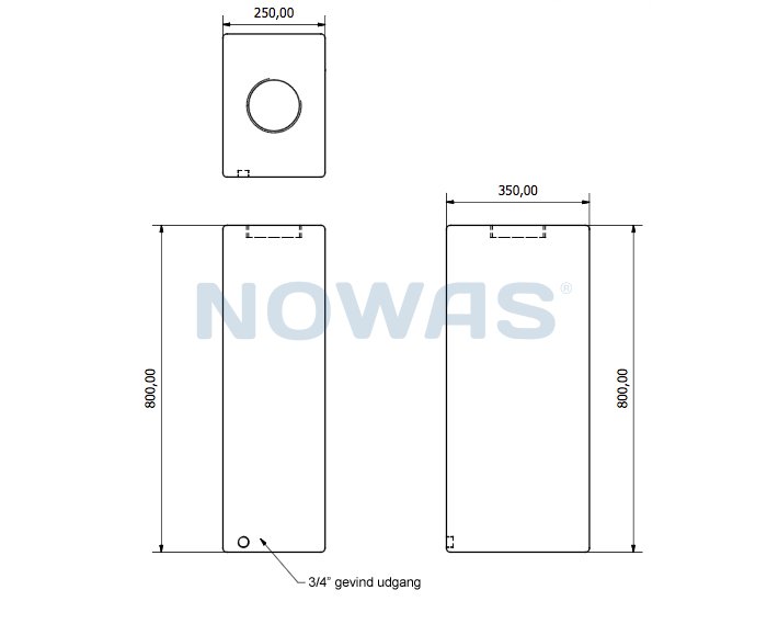 Dimensioner för den lodräta vattentanken på 60 liter.