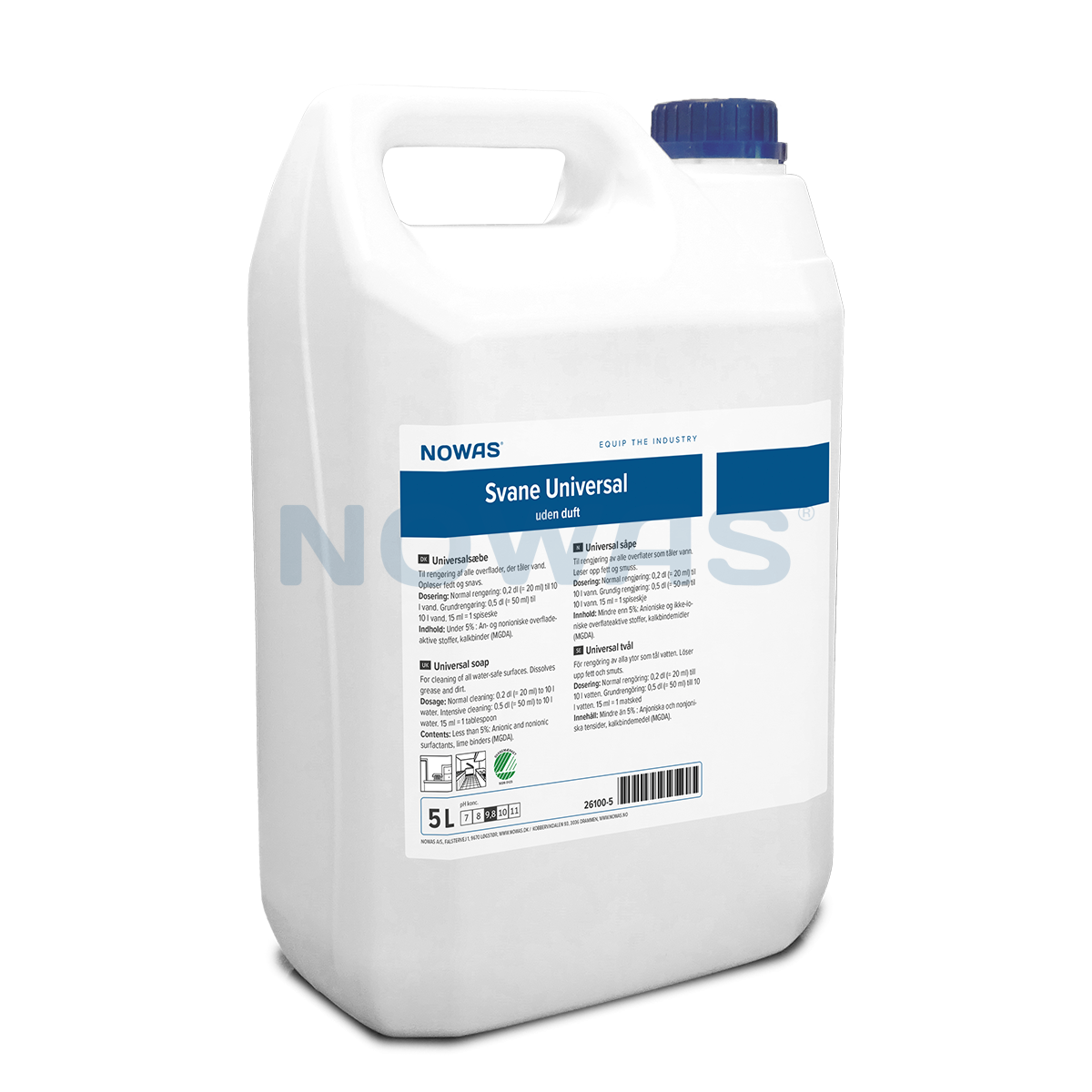 Svanen Universal utan doft är ett lätt alkaliskt universalrengöringsmedel för rengöring av alla ytor som tål vatten.
