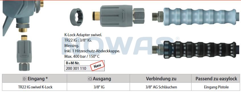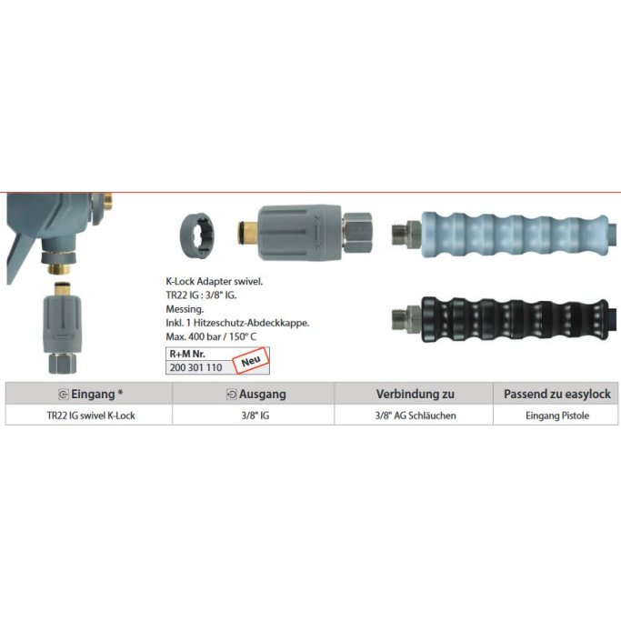 Denna svivel används för att ansluta en högtryckspistol med trapetsgänga till en högtrycksslang med M22-gänga.