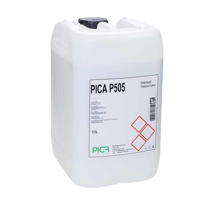 Pica P505 är ett vax- och vattenbaserat klotterskyddsmedel som effektivt skyddar mot de flesta typer av spray-, pensel-, markör- och tektylgraffiti. Detta klotterskydd är ett så kallat offerskydd, vilket innebär att ytan måste återskyddas efter klotterborttagning, eftersom skyddsskiktet helt eller delvis försvinner vid borttagning. P505 klotterborttagare bildar en skyddande film och förhindrar klotterfärger från att tränga in i underlaget. Skuggbildning och slitage på underlaget minskar därför kraftigt, jämfört med sanering med klotterborttagningskemikalier. Skillnaden blir tydlig efter flera behandlingar då den yta som klottersaneras utan klotterskydd kommer att slitas betydligt hårdare.