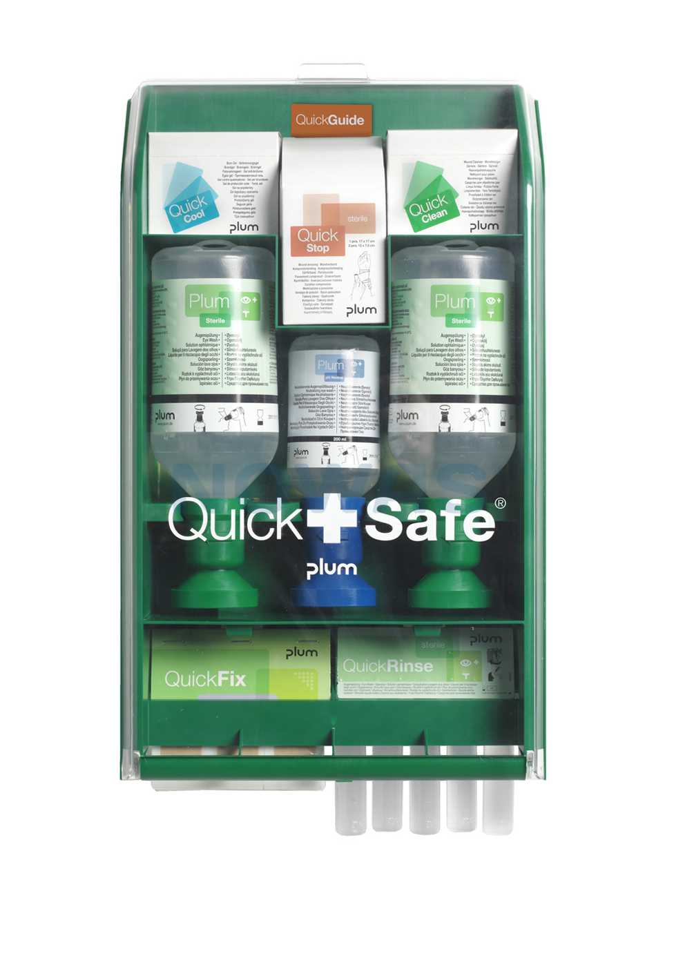 Med QuickSafe® samlar du de viktigaste första hjälpen-produkterna på ett ställe och placerar lösningen exakt där produkterna ska användas. Skåpet tar bara upp lite mer än ett A3-ark, så du kan placera QuickSafe® precis där det behövs. Det genomskinliga locket ger dig överblick och gör vägen till första hjälpen snabb och enkel. Du kan enkelt se när skåpet behöver fyllas på. Med det dammtäta locket och separat förpackade produkter är QuickSafe® både en hygienisk och elegant lösning.