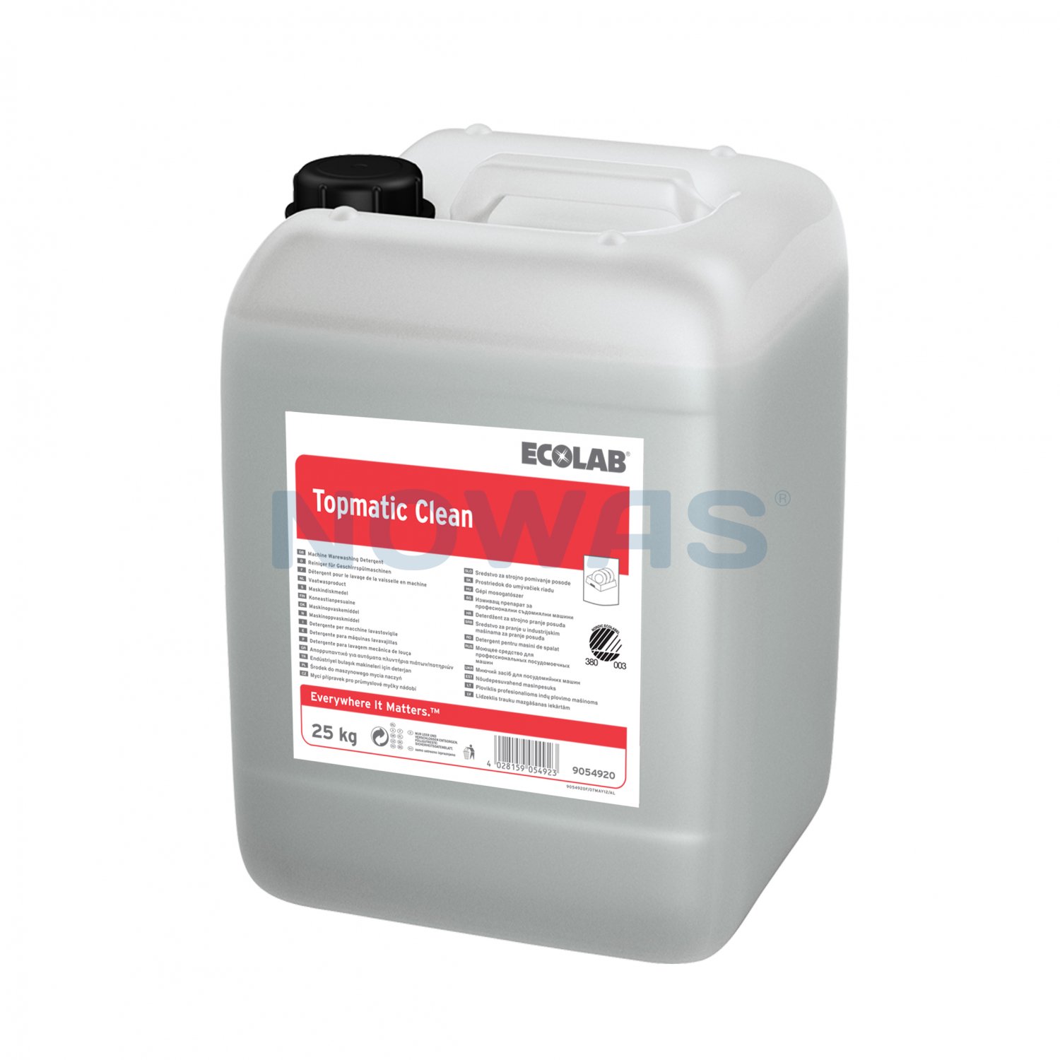 Topmatic Clean är ett hög koncentrerat maskindiskmedel som är speciellt effektiv på stärkelsebeläggningar och te/kaffefläckar. Produkten kan användas i de flesta vattenförhållanden. Baserad på innovativa ingredienser som effektivt tar bort kraftig smuts vilket garanterar ett perfekt diskresultat utan omdisk. Genom dokumenterad effektivitet och maximal miljöanpassning uppfyller Topmatic Clean kriterierna för Nordisk Miljömärknings miljömärke Svanen. Topmatic Clean används tillsammans med Ecolabs slutna doseringsutrustningar för flytande maskindiskmedel.