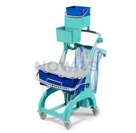 Denna kompakta städvagn kan levereras med olika tillbehör som till exempel påshållare, 4 liter stora hinkar, m.m.