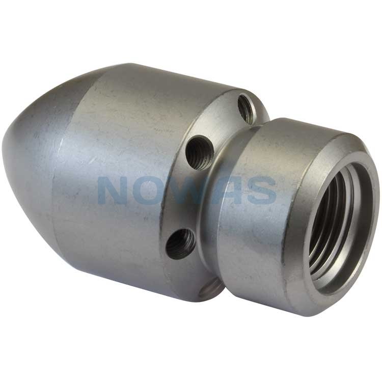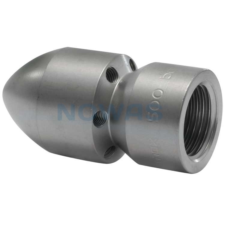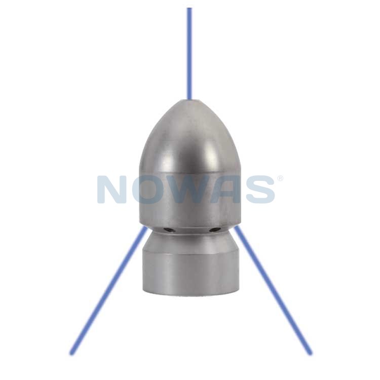 Tillverkat av slitstarkt, härdat rostfritt stål. Strålens vinkel är 30°, robust väggtjocklek, lång livslängd och minimalt slitage. Alla munstycken är utrustade med insatser av härdat rostfritt stål. Tack vare denna funktion är effektiviteten avsevärt högre jämfört med munstycken med borrade hål, och livslängden är flera gånger längre. Max. 500 bar.