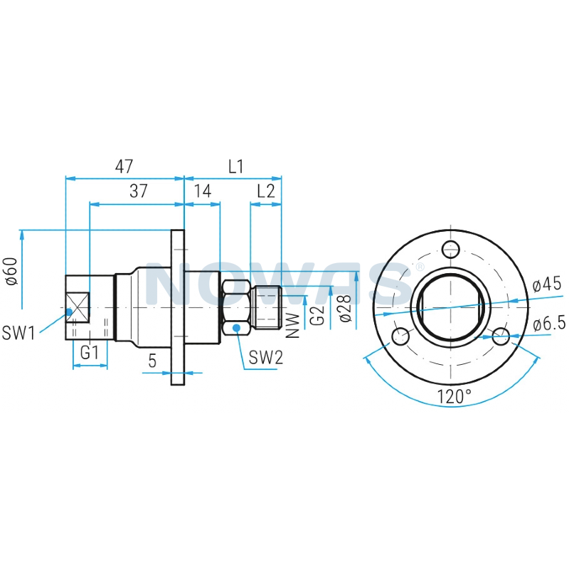| Artikelnummer. | G1(F) | G2 (M) | NW | SW1 | SW2 | L1 | L2 | Vikt |
