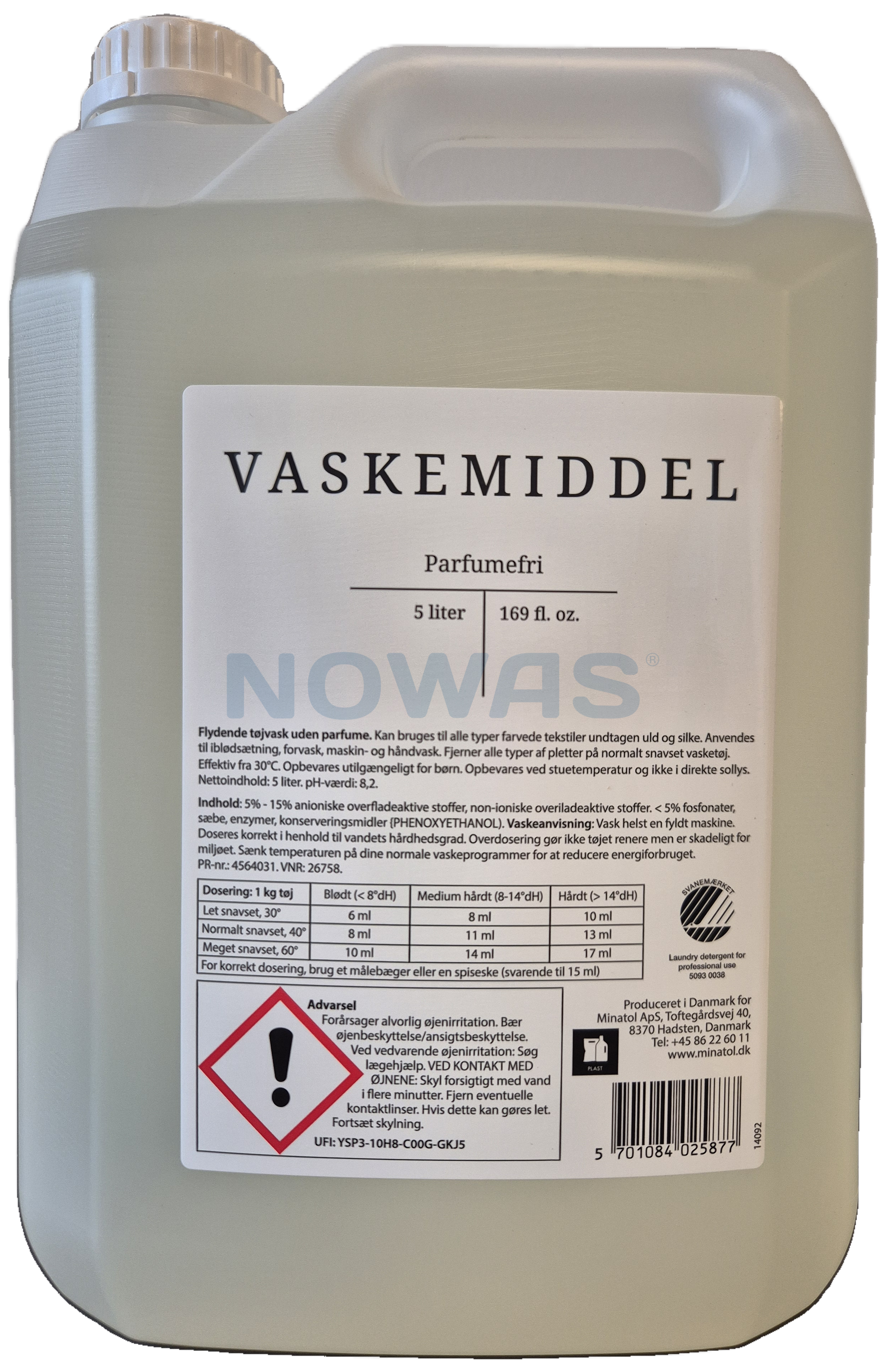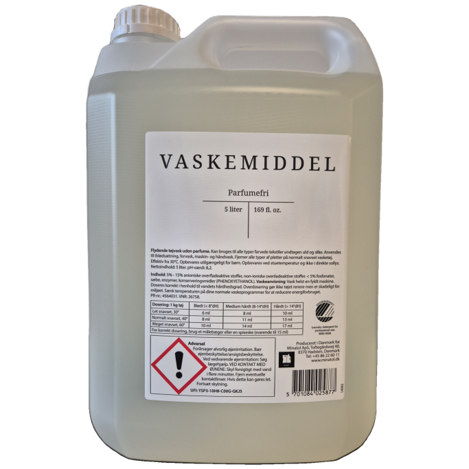 Flytande tvättmedel 5 l. utan parfym, Svanenmärkt